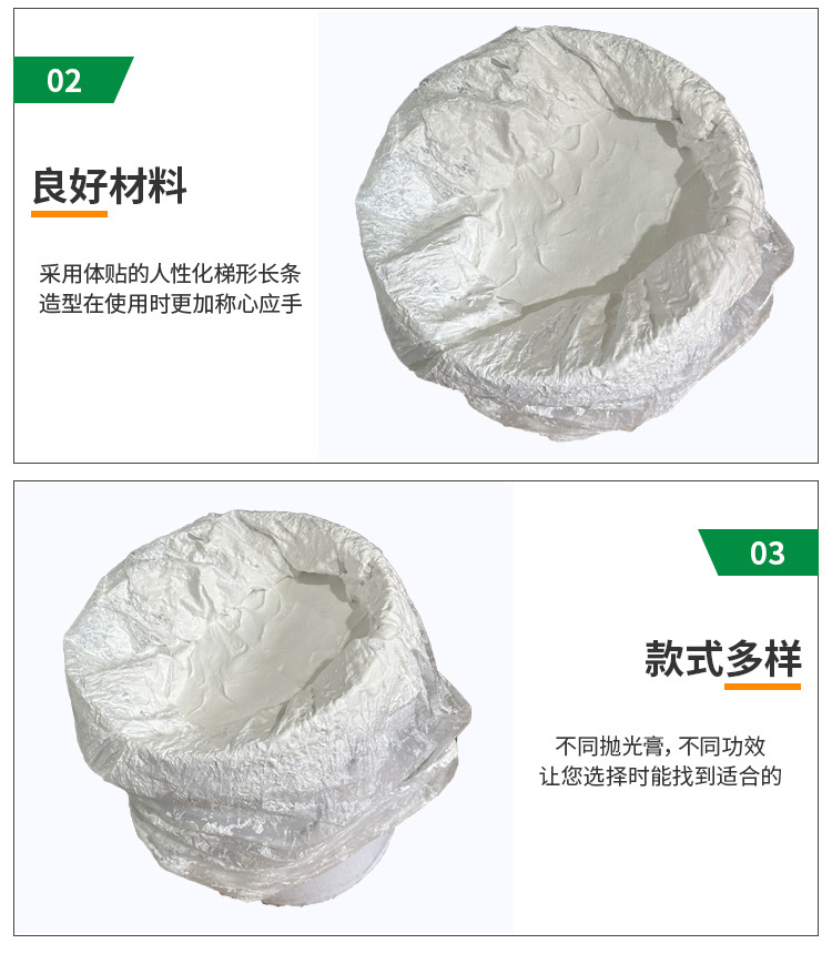 拋光臘 白蠟 拋光膏 金屬拋光膏 工業白蠟 工業蠟 不銹鋼拋光臘采用高強全樹脂砂布為原材料,使用高強粘度樹脂膠,產品質量穩定,外觀美觀。適用行業非常廣泛,可用于各類金屬、非金屬產品表面研磨、拋光。