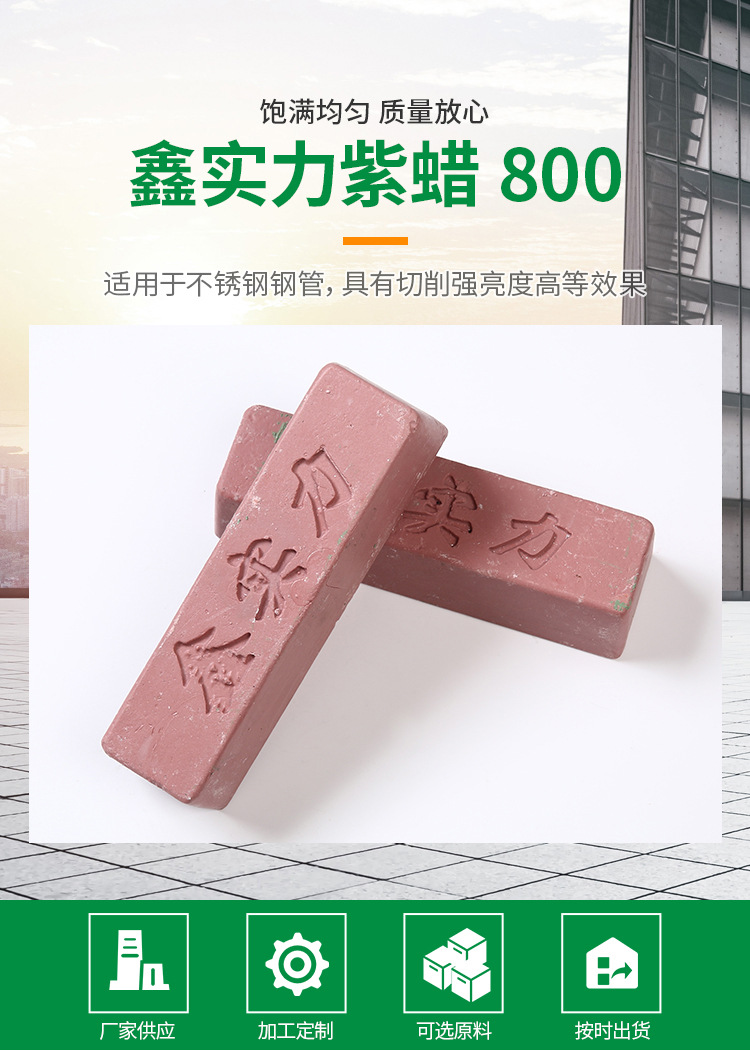 黑蠟:又稱黑紫蠟、鐵蠟、黑油棒等。早前被用于鐵件表面的中拋,因為它具有超卓的切削力,因而也常見于各類金屬如不銹鋼的粗到中拋工序。