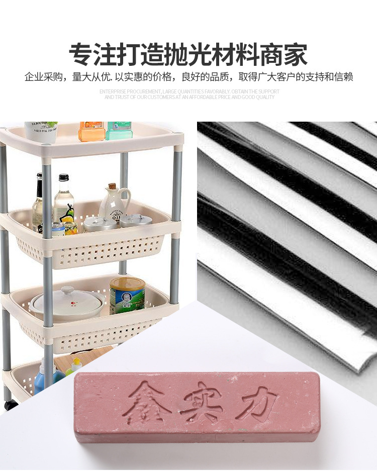 其內(nèi)含豐富有的油脂,因選材講究,更具有超卓的光澤度及切削力,具有相當(dāng)不錯拋光效果,拋后紋路光滑細(xì)膩。不會燒傷工件,一般配合粗布輪粗拋使用,價格比較實惠。