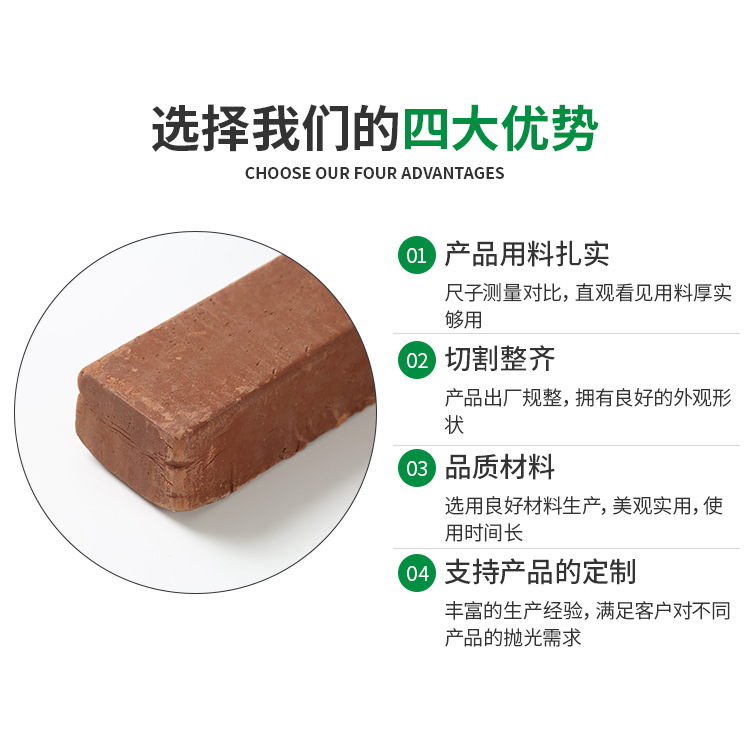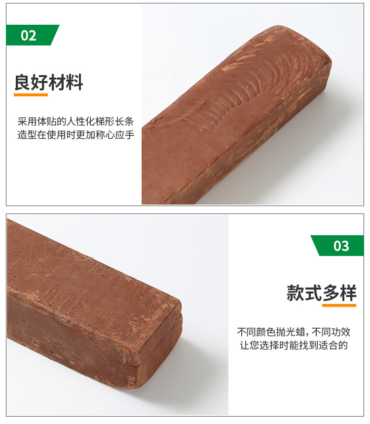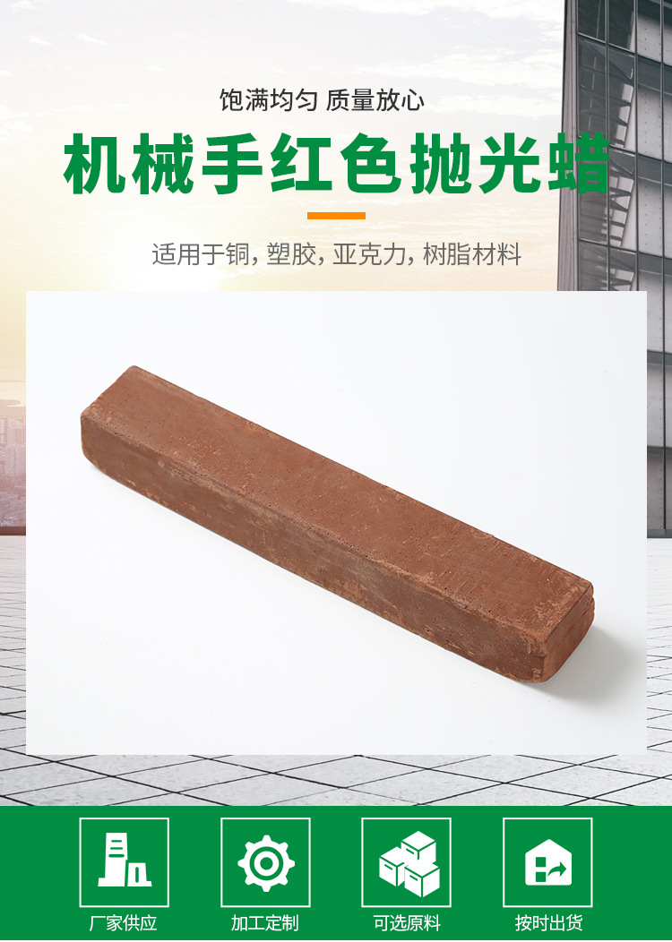 華銘機(jī)械手紅色拋光蠟(臘)與布輪配合使用,適合任何材質(zhì),有著出光快,可以達(dá)到鏡面效果,是華銘目前較好的一款產(chǎn)品。采用體貼的人性化梯形長(zhǎng)條造型在使用時(shí)更加稱心應(yīng)手,款式多樣不同顏色拋光蠟,不同功效讓您選擇時(shí)能找到適合的