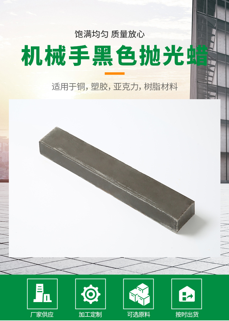 溫州華銘拋光研磨材料廠家直供拋光蠟,五金拋光打磨磨砂磨料拋光蠟,不銹鋼拋光膏鏡面,本產品配合麻輪、布輪、針對適用于銅,塑膠,亞克力,樹脂材料、硬質材質等有著較高的黑光。