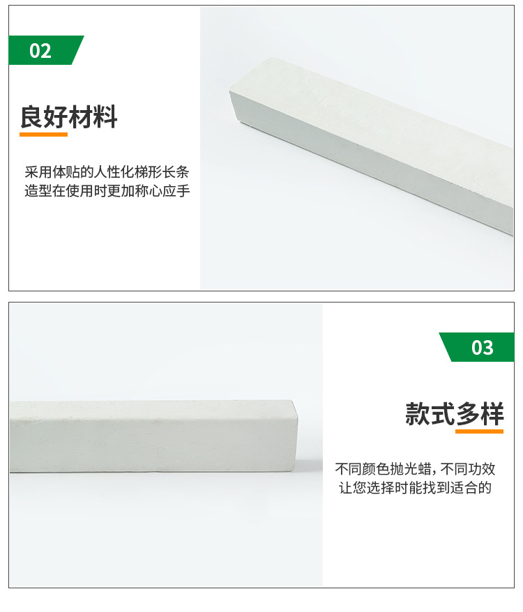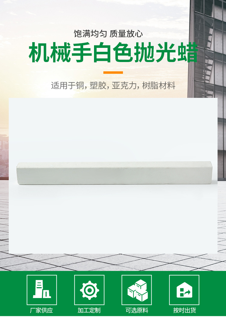 機(jī)械手白色拋光蠟 不銹鋼拋光蠟拋光膏打磨研磨蠟由溫州華銘拋光研磨材料有限提供,本公司提供的拋光臘用料厚實夠用,選用良好材料生產(chǎn),外觀美觀實用,使用時間長,可滿足客戶對不同產(chǎn)品的拋光需求,豐富的生產(chǎn)經(jīng)驗,滿足客戶對不同 產(chǎn)品的拋光需求。咨詢電話:13075703790